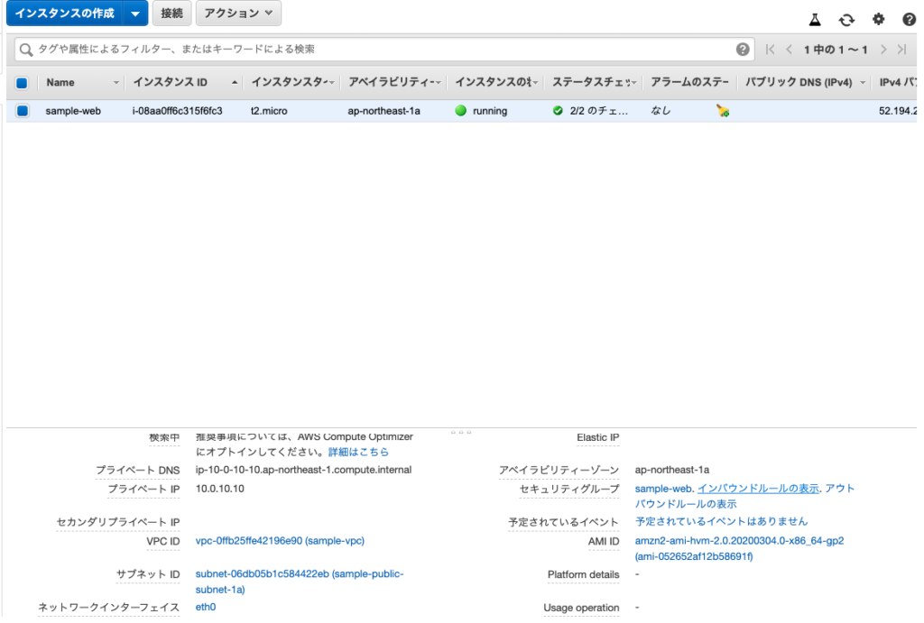 - Elastic IPはEC2インスタンスに関連付けられており、インスタンス起動中は無料だが停止中は課金されるため、EC2インスタンスを利用しない時は解放しておく。