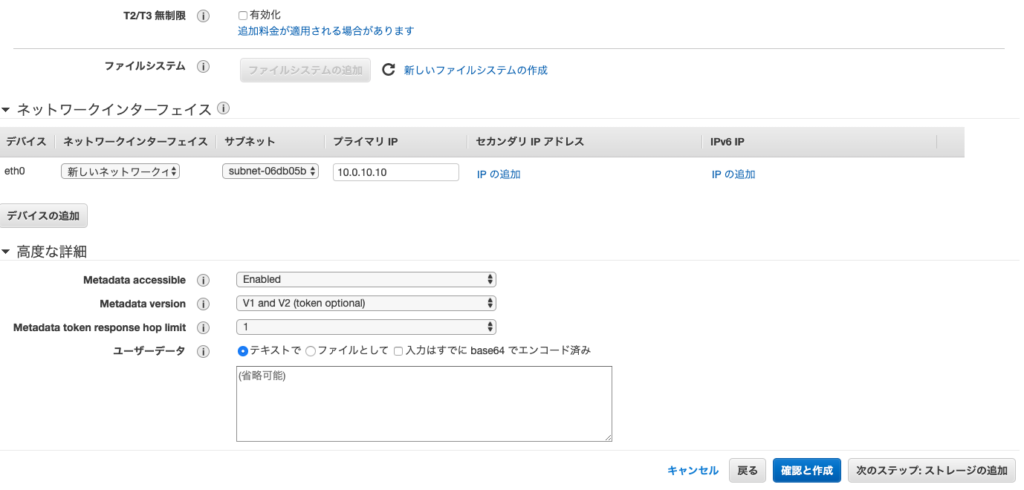 | 終了時に削除 | EC2インスタンス終了時に削除するかどうか、消し忘れによる課金を防止できる |