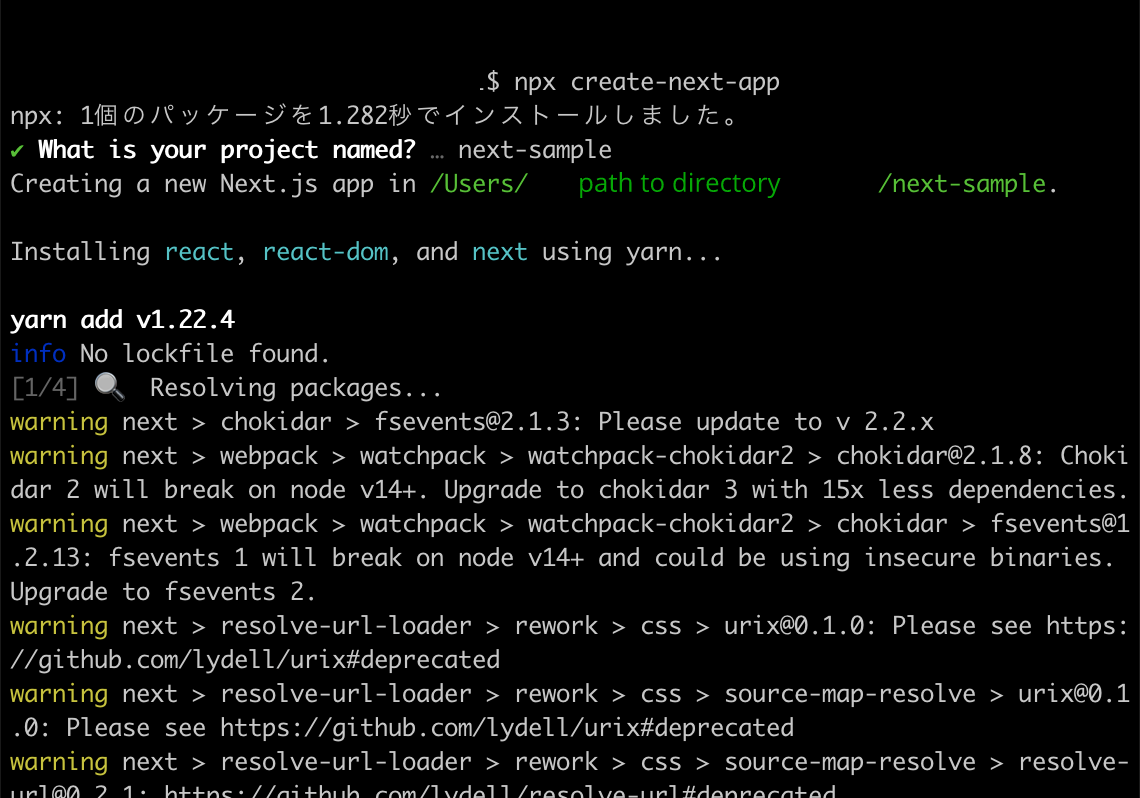 Nextのアプリの作成にはcreate-next-appコマンドが推奨されています。