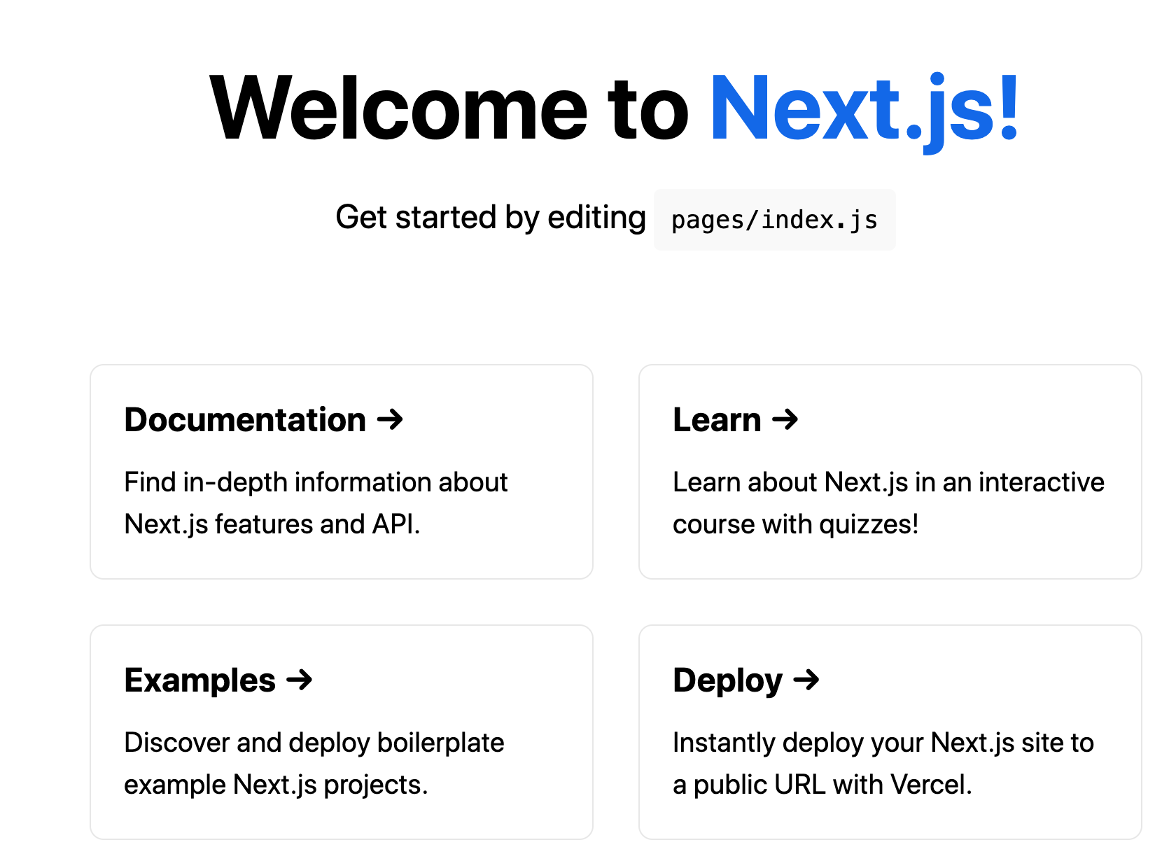 npm run dev または、yarn devを実行すると、http://localhost:3000上でアプリケーションが起動します。アクセスするとWelcomeページが表示されるかと思います。